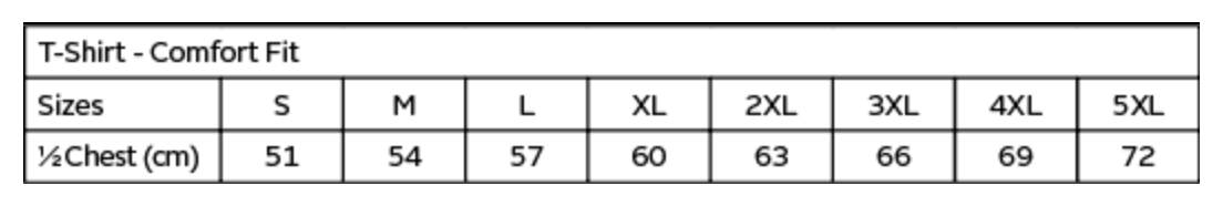 This cotton crew neck T-shirt is available for kids from 4 years old to 14 years old and in Adult Unisex Sizes S - XXL.